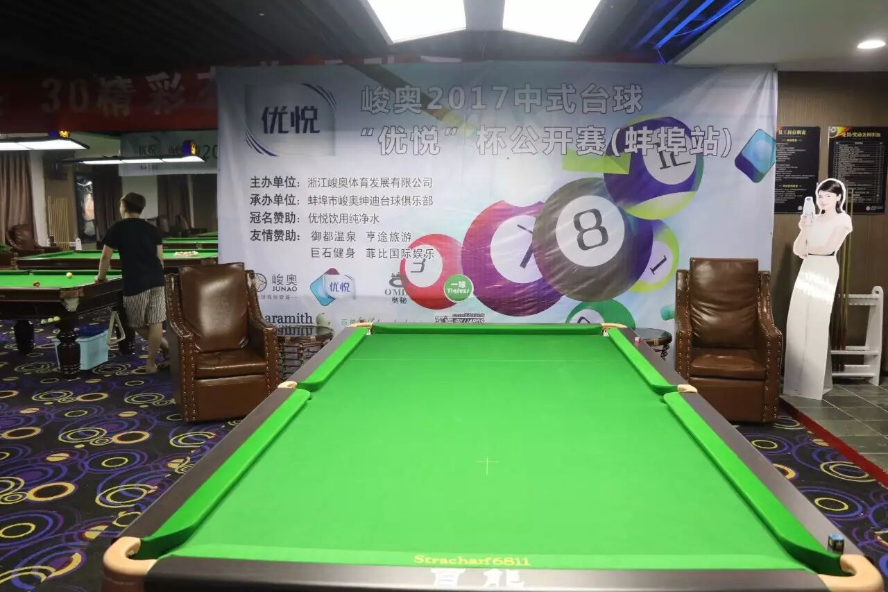 8月19日下午2点,峻奥2017“优悦杯”中式台球公开赛(蚌埠站)在蚌埠市峻奥绅迪台球俱乐部正式打响。据悉,本次比赛由浙江峻奥体育发展有限公司主办,蚌埠市峻奥绅迪台球俱乐部承办,优悦饮用纯净水冠名赞助,峻奥官网、奥秘官网、TOP147、东北台球网、新浪体育、搜狐体育、网易体育、新华在线、人民网、凤凰网、中国新闻网等多家媒体鼎力支持。