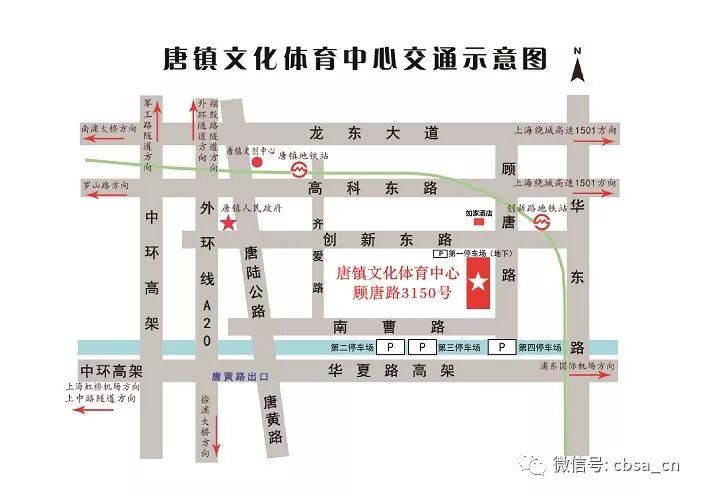 4、从酒店出发延顾唐路步行约5分钟左右到达报到地点(顾唐路3150号唐镇文化体育中心)。